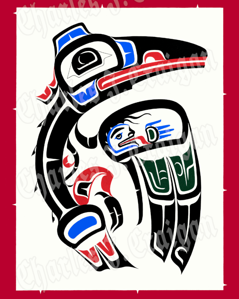 Pacific Coast Native Artist Charles J. Craigan was first inspired to draw in the third grade when he first laid eyes on Robert Davidson work in a library book at his school. That same book was thereafter signed out by his as he began his own process to learn his craft and traditional art.